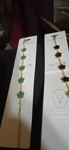 I wasn't expecting to love this bracelet as much as I do now. It truly is a nuanced piece of art that brings a classy touch to my outfits. The five-leaf clover detail is not only symbolic but also a conversation starter. It's one of the most beautifully crafted accessories I've ever owned. If you want sophistication with a hint of glam, this is the bracelet for you. Grateful to have stumbled upon this gem!